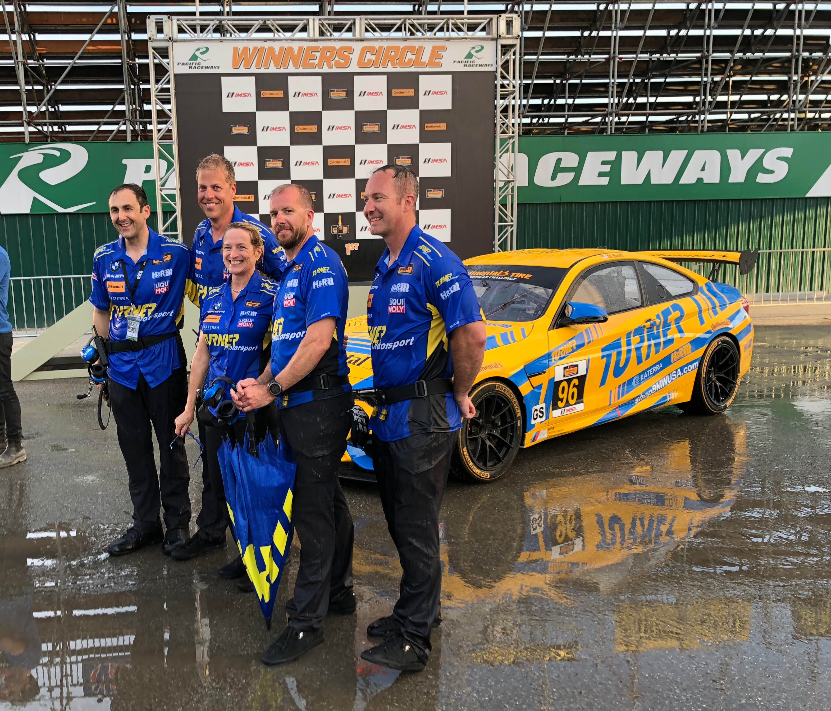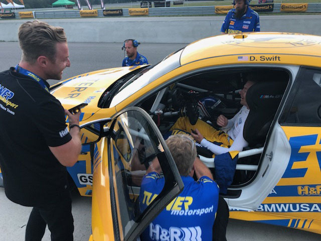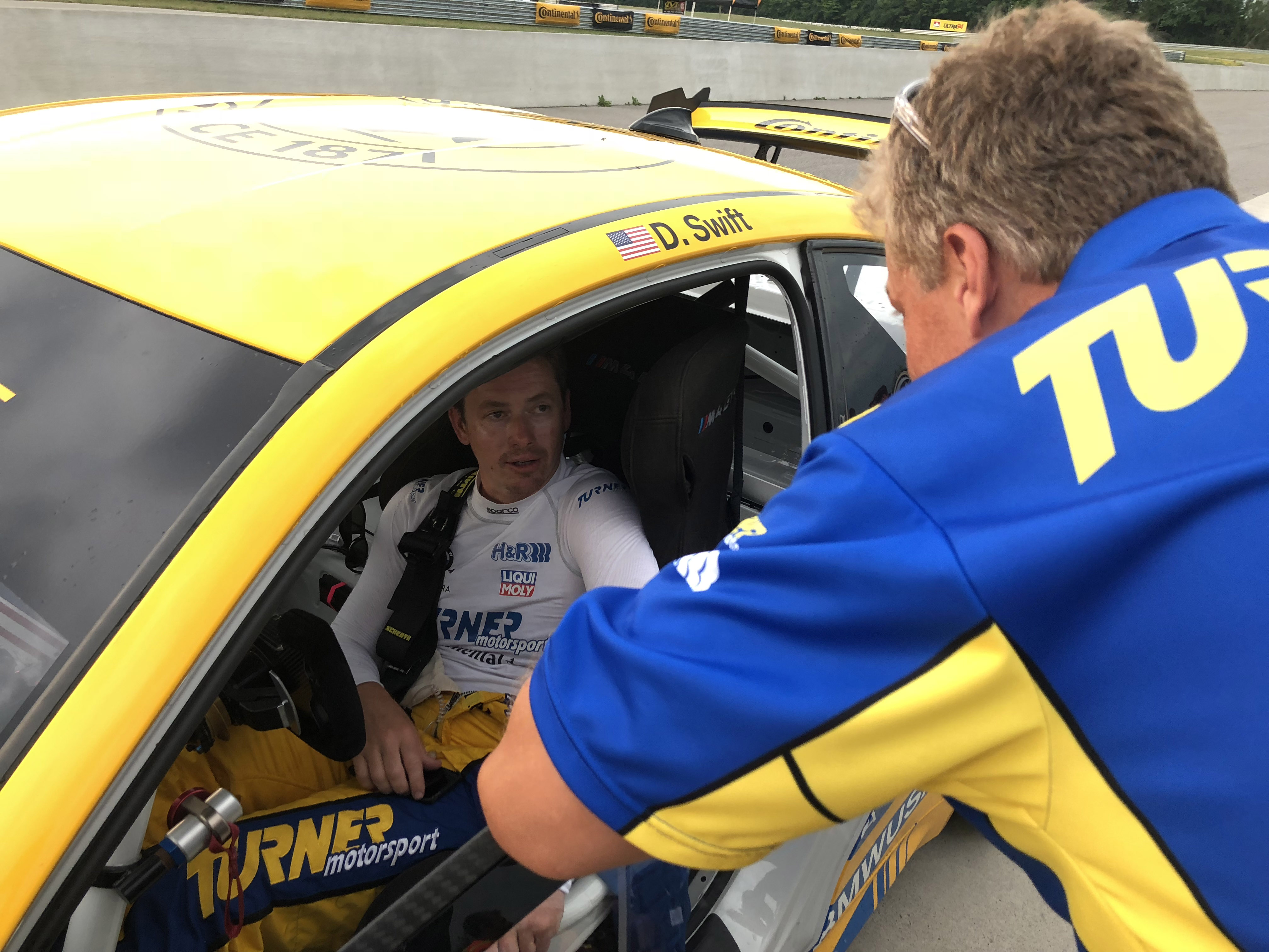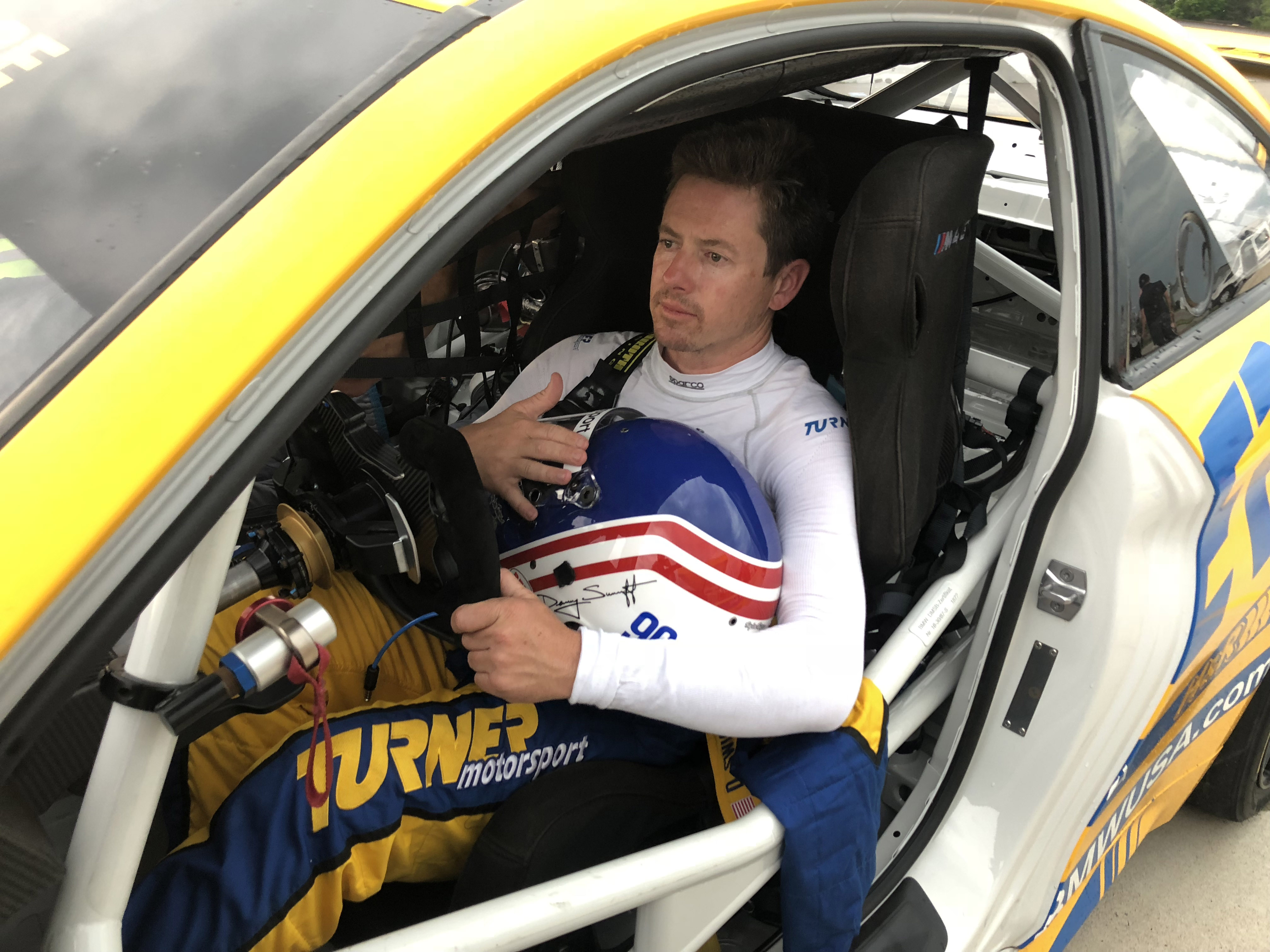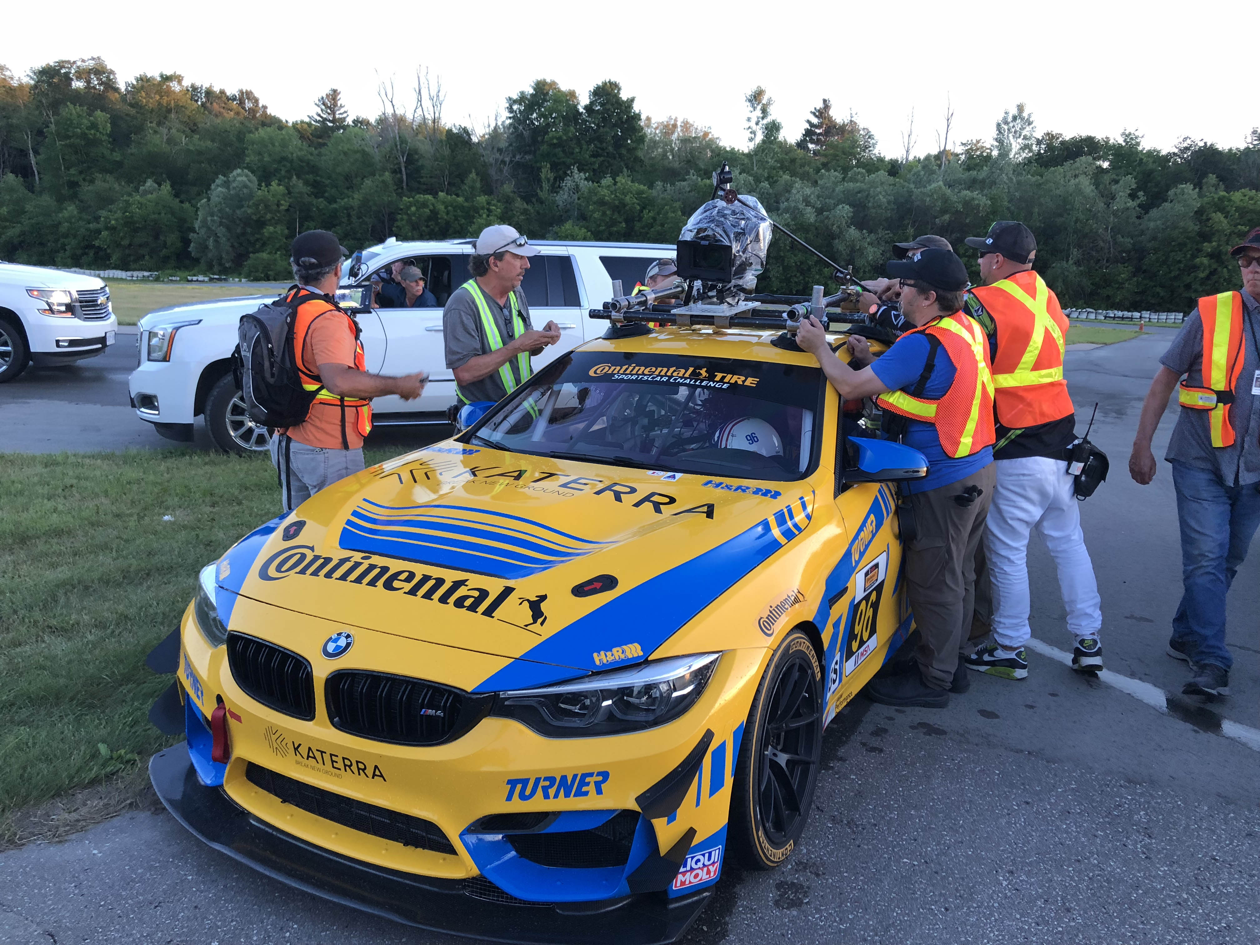 Now for the really cool part, Patrick and his colleagues offered Turner Motorsport to be in the main race scene. Milo Ventimiglia who plays the main character Denny, will be driving the Turner BMW in the pivotal race when a raindrop hits the windshield the call is made to duck into the pits to get rain tires on before his competitors do. The actual Turner Motorsport pit crew performs the pit stop and tire change to get Denny back out on track. Denny then races through the field in the Turner BMW and in the end, takes the win. Denny is dressed in full Turner Motorsport gear and car is featured the iconic blue and yellow Turner livery. Denny and car will make it to victory circle helping to launch Denny’s professional racing career.