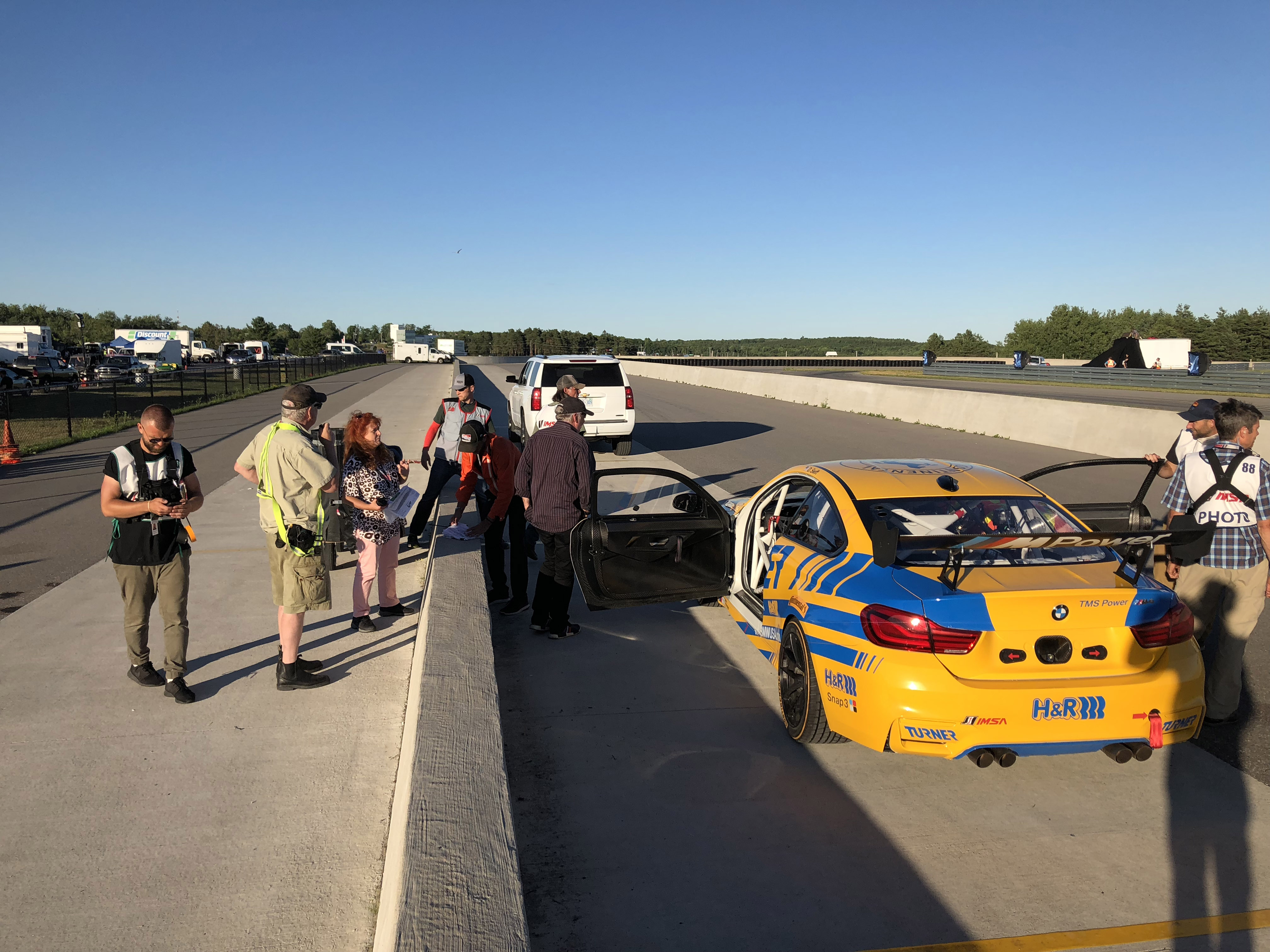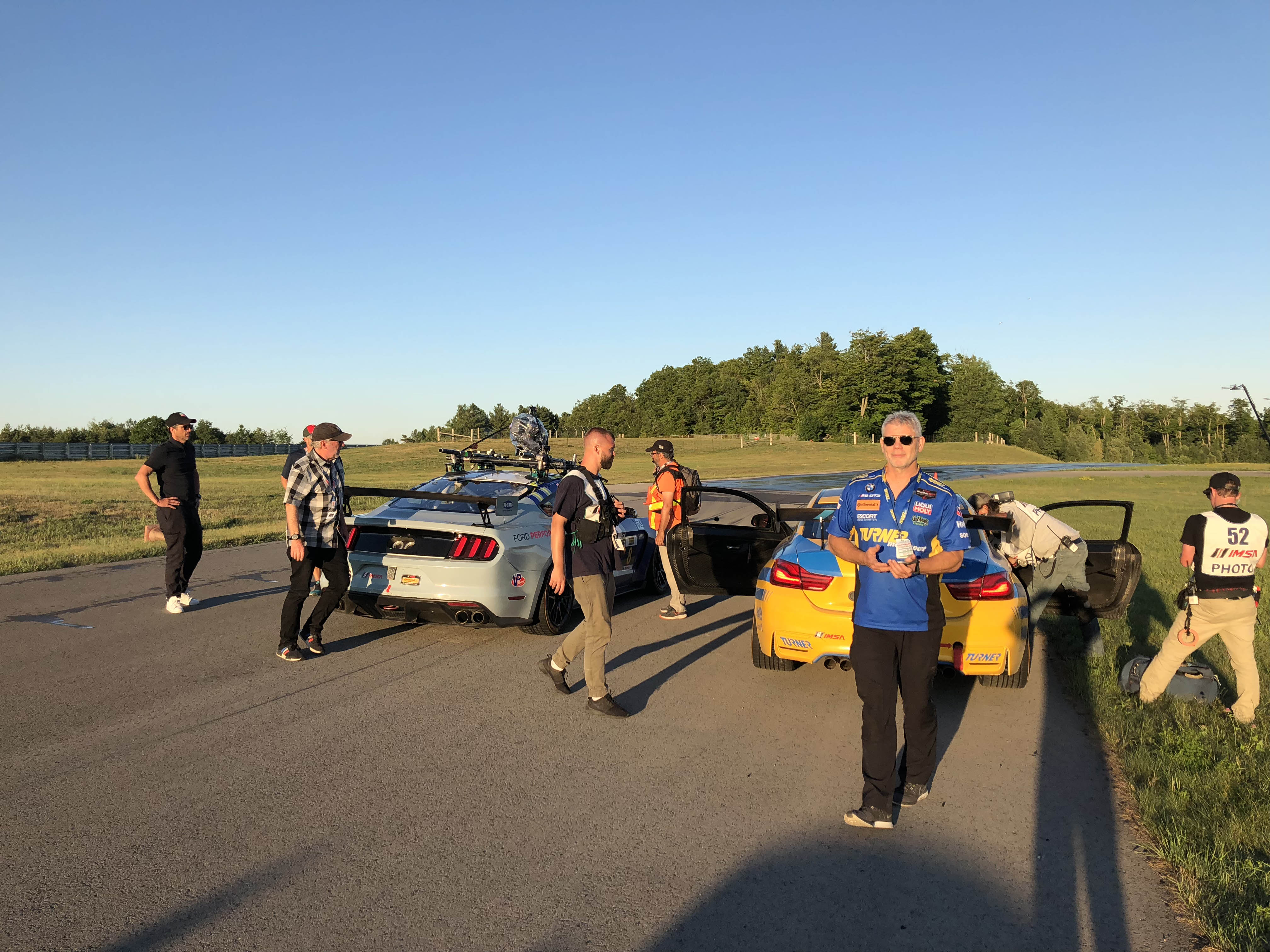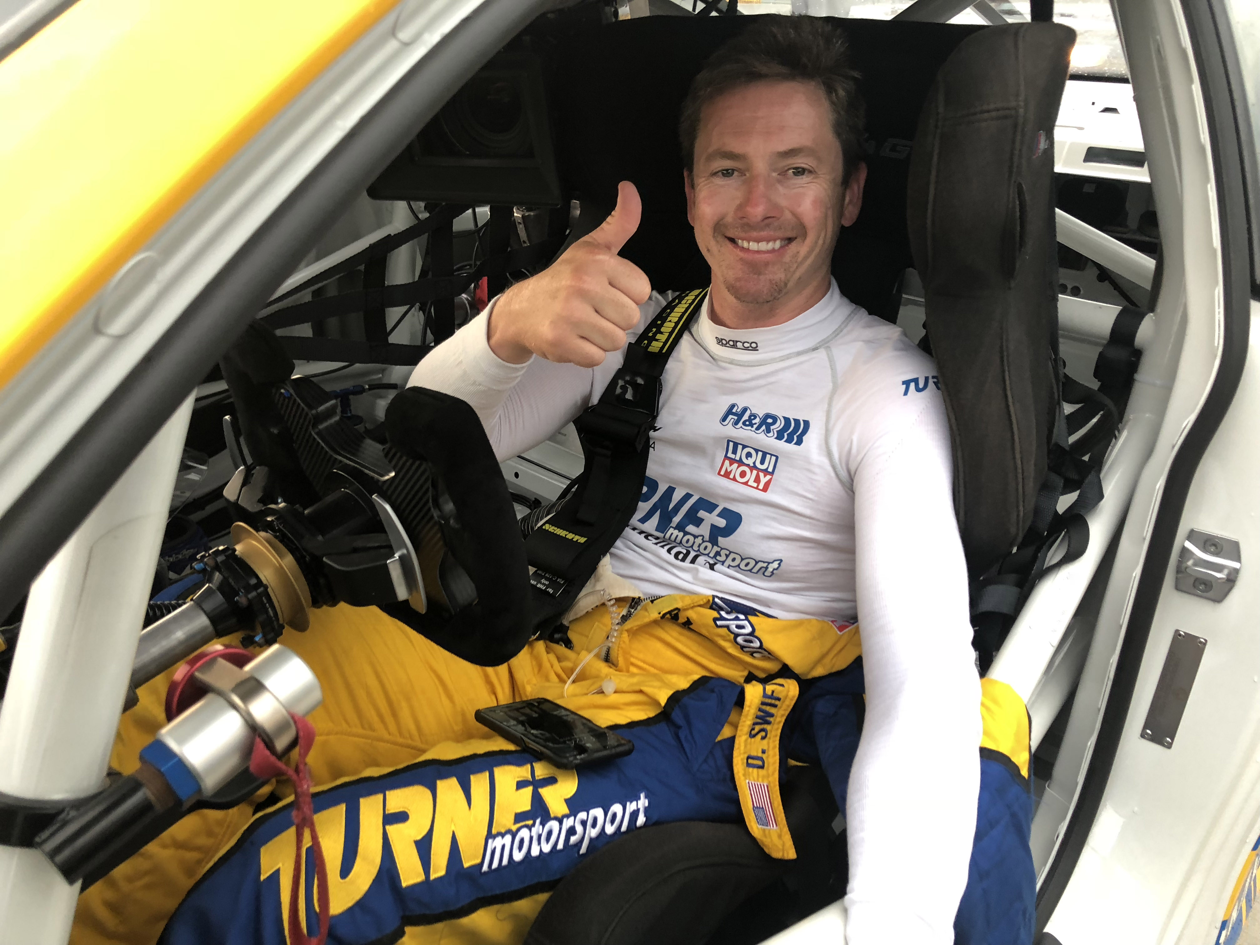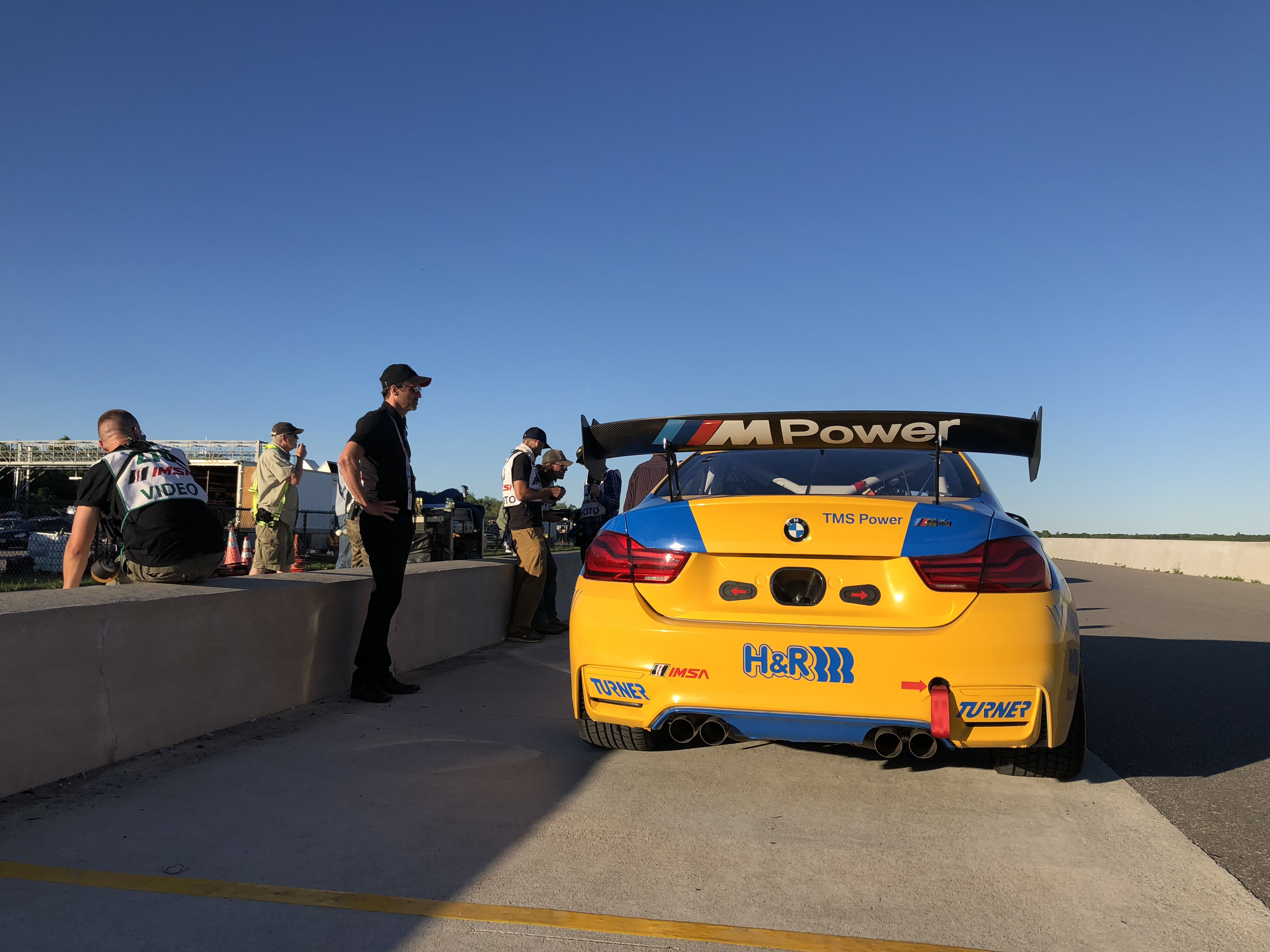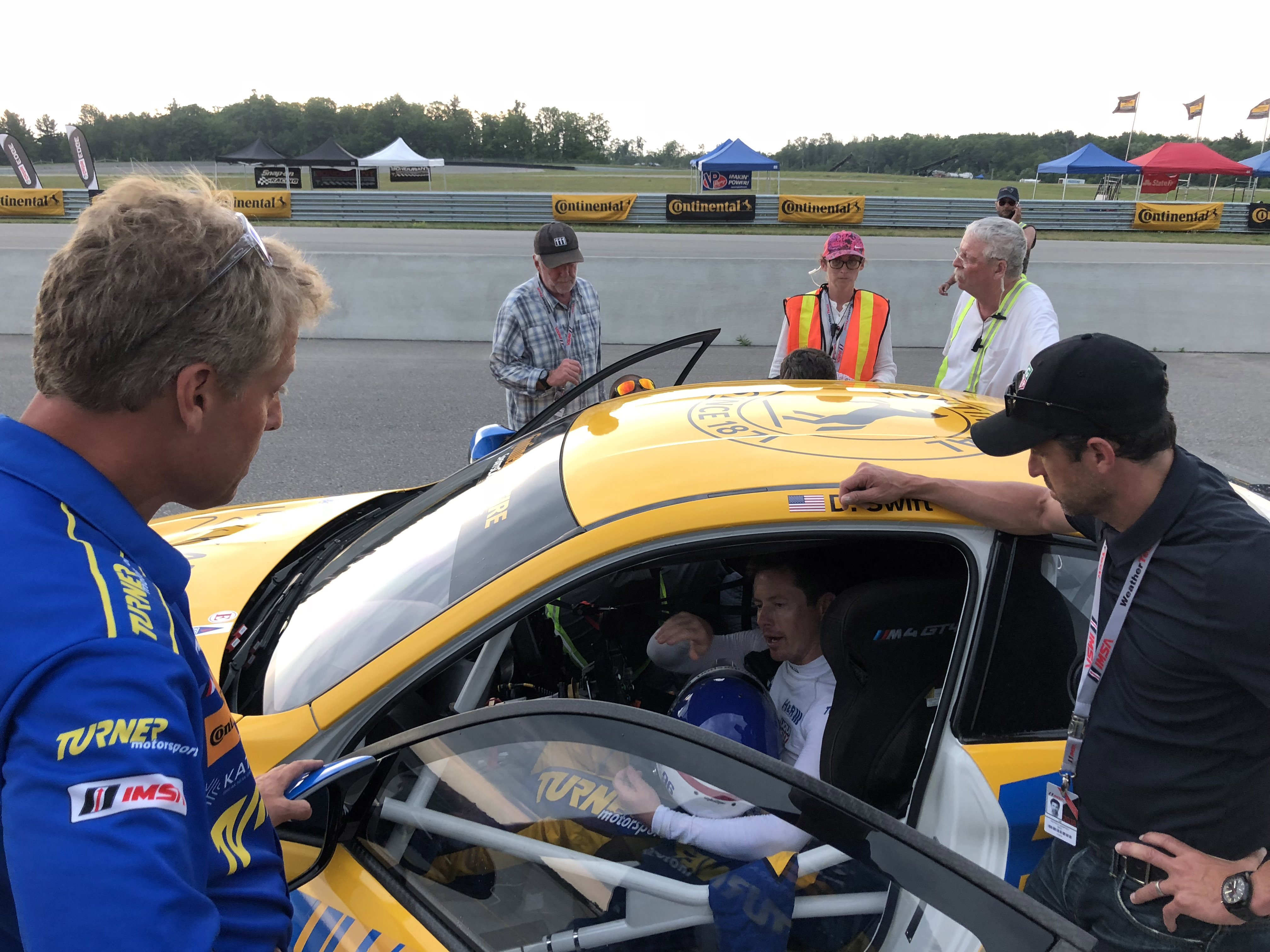 Now for the really cool part, Patrick and his colleagues offered Turner Motorsport to be in the main race scene. Milo Ventimiglia who plays the main character Denny, will be driving the Turner BMW in the pivotal race when a raindrop hits the windshield the call is made to duck into the pits to get rain tires on before his competitors do. The actual Turner Motorsport pit crew performs the pit stop and tire change to get Denny back out on track. Denny then races through the field in the Turner BMW and in the end, takes the win. Denny is dressed in full Turner Motorsport gear and car is featured the iconic blue and yellow Turner livery. Denny and car will make it to victory circle helping to launch Denny’s professional racing career.